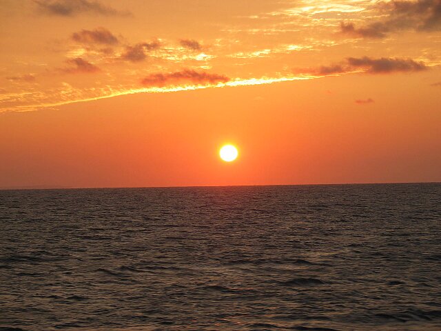 運良く利尻島から稚内に帰る途中の船上で夕陽を見ることができました。